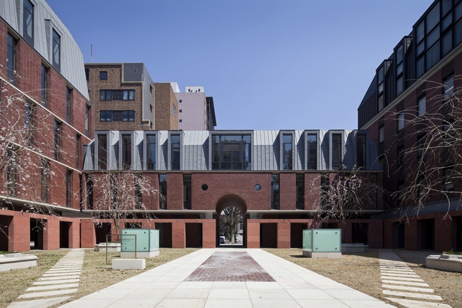 香山 2011年(平成23年)に竣工した赤門横の「伊藤国際学術研究センター」も、大正時代に建てられた旧赤門書庫を保存・再生し、それを包み込むかたちで新たな建物をデザインしたものです。この書庫は壊す案もありましたが、色々検討した結果、古いものを活かして連続させながら、時間と共にさらに建物の風格が増すかたちが良いと考えました。