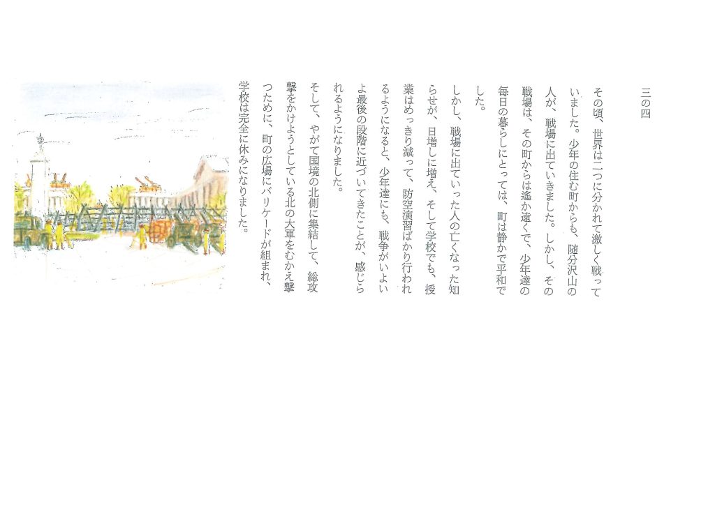 あの頃の日本の地方都市や田舎、例えば田園や建ち並んだ家々といった風景は、言葉で表すことが難しいほど美しいものでした。日本の伝統的な街並みは、江戸期にその基本が形づくられ、明治期に成熟したという歴史があります。戦時中の空襲でその一部は失われましたが、私が暮らした頃の町や村には昔ながらの「美しい日本」がありました。しかし、当時の私はその環境を100%素晴らしいと感じていたわけではありません。日本の伝統的な街並みや建物には、『陰翳礼讃』にも記されているような、ある種の影がありました。それが子供心にとても怖かったのです。また、それまで過ごした新京の近代的で清潔な都市と違い、道も舗装されておらず雨が降ると泥だらけで……それは当時の私にある種の貧しさを感じさせるもので、「満洲へ帰りたい」と思ったこともありました。