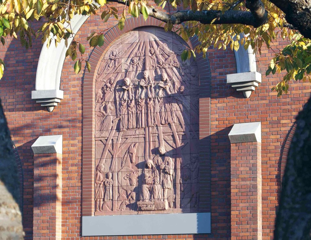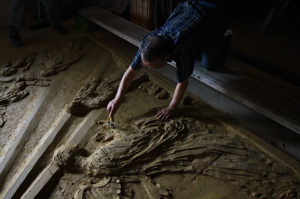 最近も10年がかりで大きなレリーフをつくりました。函館市にある、日本最初の女子修道院として知られる「天使の聖母 トラピスチヌ修道院」(通称・天使園)には、以前「旅人の聖堂」(2001年)を設計したご縁もあり、大正時代に建てられた修道院の修繕などを行ってきました。ある時、この修道院のファサードにあった大きなアーチ窓が崩れてしまい、そこにレリーフをつくって入れて欲しいという要望をいただいて、これを自分でつくることにしました。