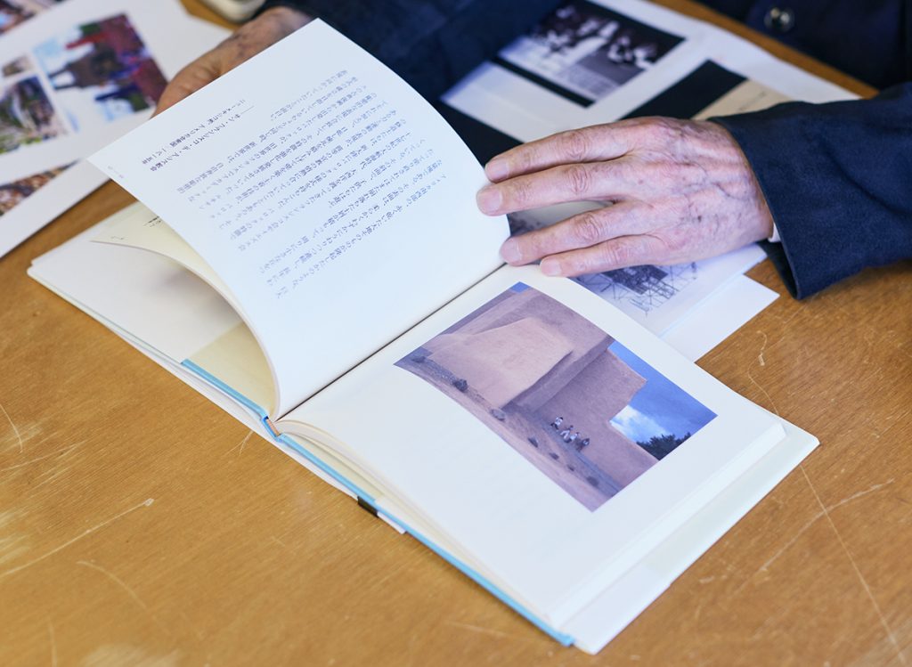 『建築のポートレート』(2017年/LIXIL出版)を開く香山氏