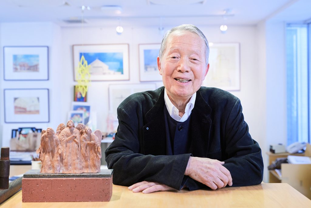 これまで設計した建物でも「同志社中学校・高等学校」(2010年)や「ロームシアター京都」(2016年)などで、彫像や壁面レリーフをつくってきました。